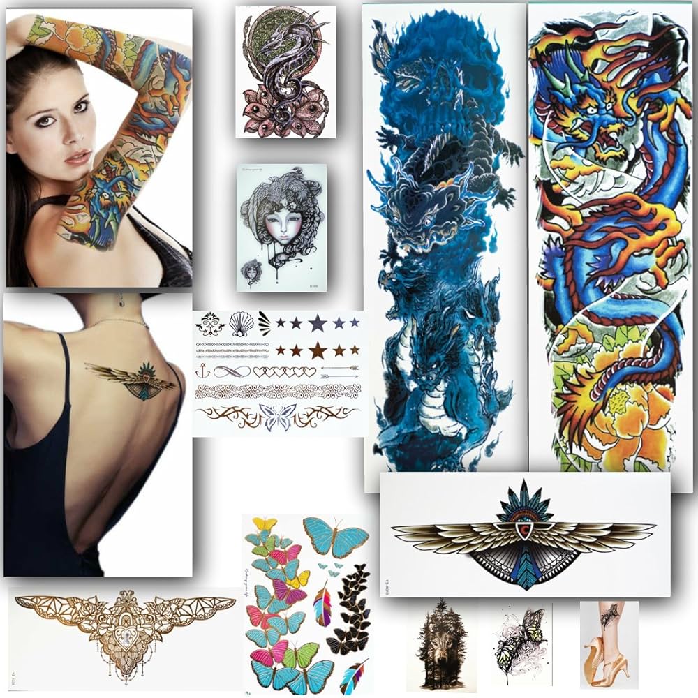 Lunesong Large Temporary Tattoos Series 2 10 Temporary Tattoo Sheets Large Full Arm Sleeve Tattoo Metallic Realistic For Women For Men For Kids Series 2 Amazon Sg Beauty
